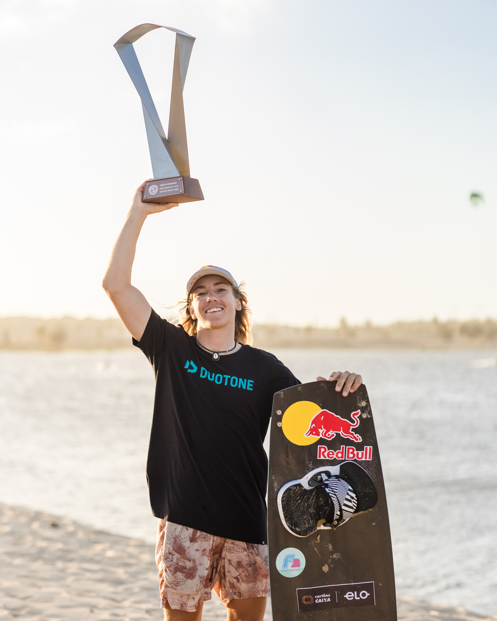 I'm Finn Flügel, 16 years old. I was born into a sports-obsessed family in Hof, Germany and first stood on a kiteboard at age six. At age ten, I knew kitesurfing wasn't just a hobby - it was my future. I convinced my parents to let me chase this dream and relocate to Egypt. This move changed everything. The conditions are perfect year-round, allowing me to push my limits daily. It's paid off - I'm now the 2025 Men's Freestyle World champion and Youth Big Air World Champion. Nowadays, I'm travelling the world, training and competing in the men's world tour, while keeping up with studies. I'm living my dream.